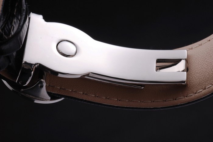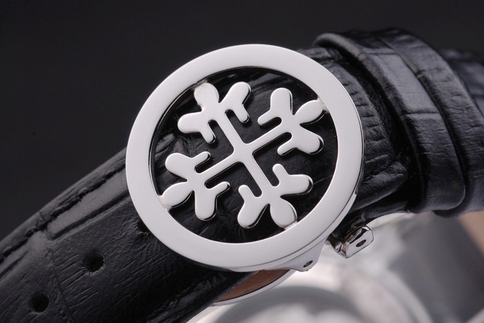 Bracelet en acier inoxydable: bracelet en cuir noir avec Patek Philippe timbre et un pli en acier inoxydable avec fermoir Patek logo buckle