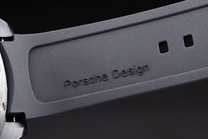 Bracelet: Tyr-gorge bracelet en caoutchouc noir avec la chaleur en relief Porsche timbre et placage ionique crochet boucle déployante avec Porsche inscription