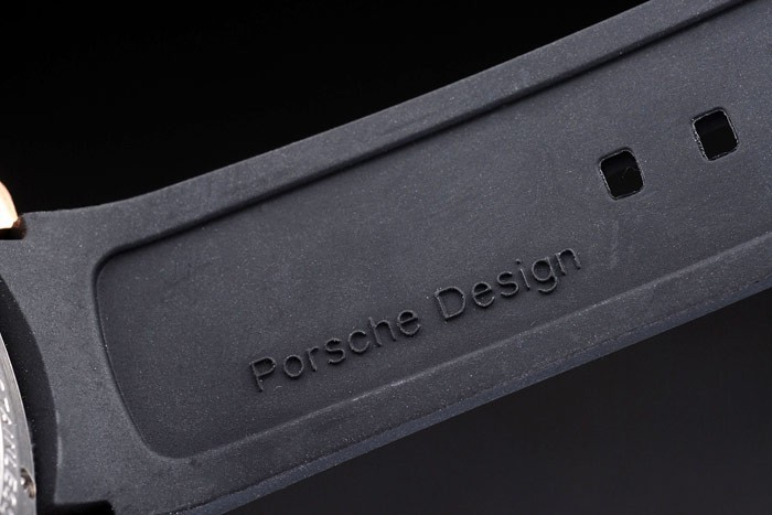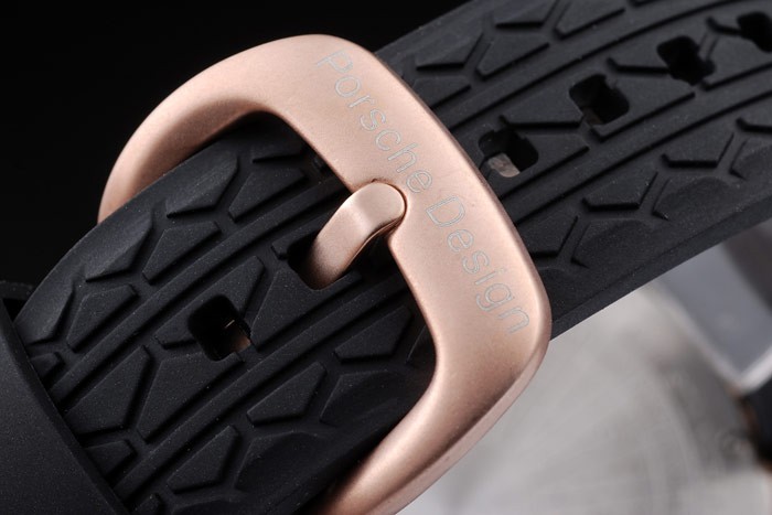 Bracelet: Tyr-gorge bracelet en caoutchouc noir avec la chaleur en relief Porsche timbre et or rose crochet boucle déployante avec Porsche inscription