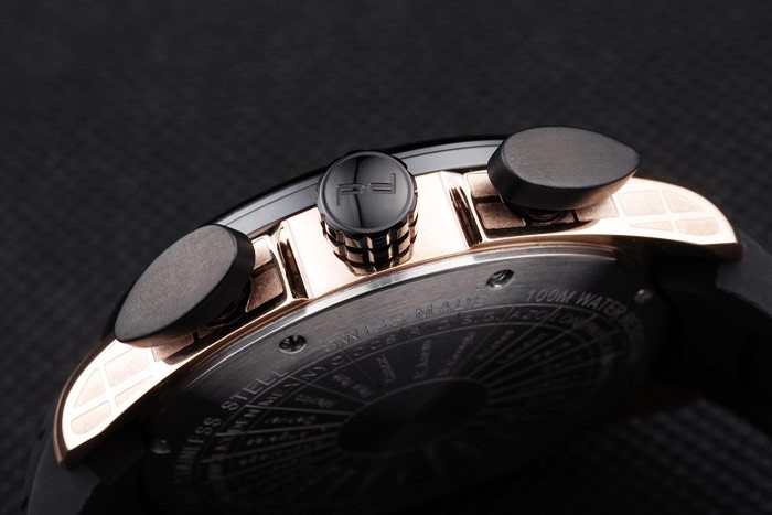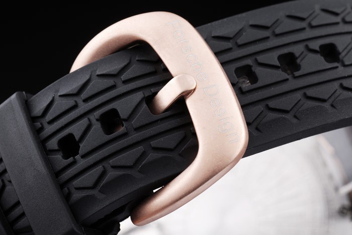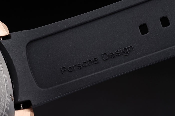 Bracelet: Tyr-gorge bracelet en caoutchouc noir avec la chaleur en relief Porsche timbre et or rose crochet boucle déployante avec Porsche inscription