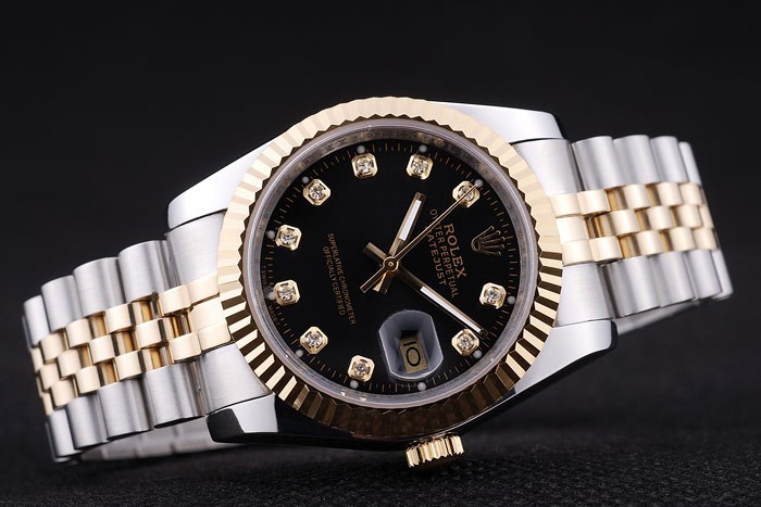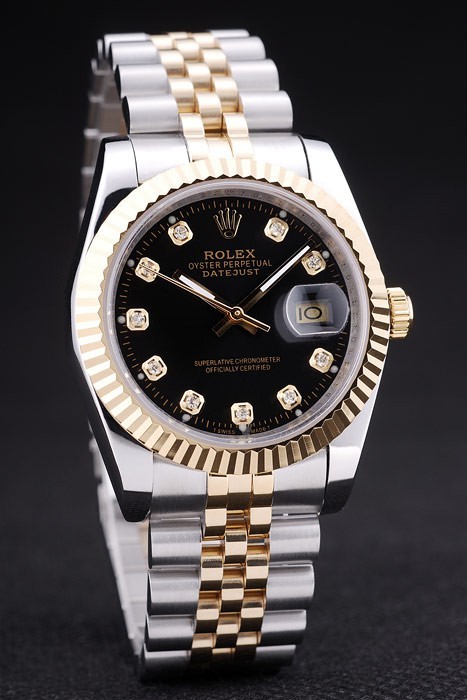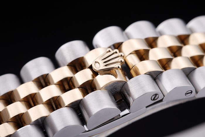 Bracelet en acier inoxydable: acier inoxydable brossé et or jaune bracelet lien avec Rolex logo caché clasp