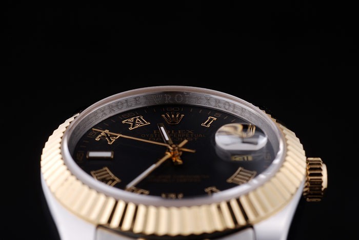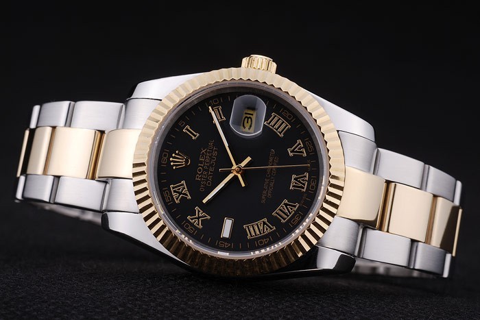 Bracelet en acier inoxydable: acier inoxydable brossé et or jaune bracelet lien avec Rolex logo déploiement clasp