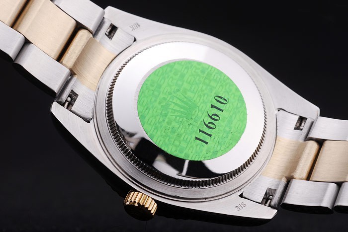 Retour: Acier inoxydable composant logiciel enfichable dans le dos avec le vert Rolex authenticité sticker