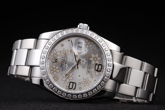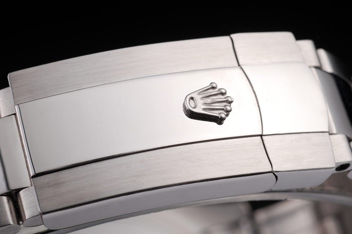 Bracelet en acier inoxydable: brossé lien bracelet en acier inoxydable avec Rolex gravé fois en boucle déployante affichant la longueur Rolex logo