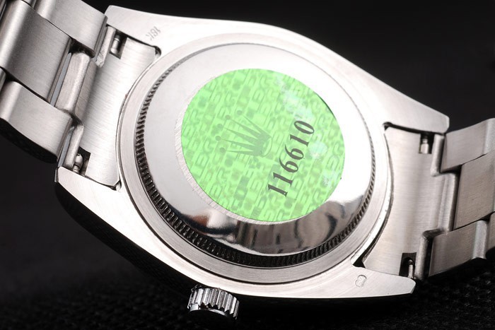 Retour: Acier inoxydable de cas de poussée en arrière avec vert Rolex logo stamp