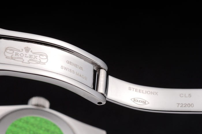 Retour: Acier inoxydable de cas de poussée en arrière avec vert Rolex logo stamp