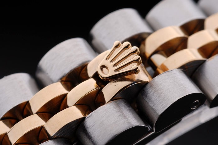 Crown: plaqué or jaune 18k couronne cutwork en acier avec Rolex logo