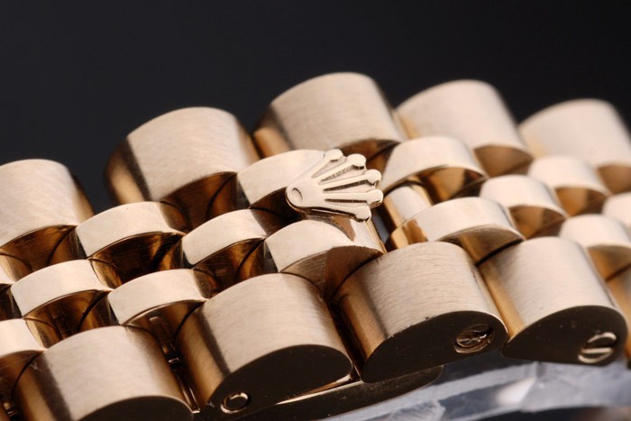 Watch fermoir: couronne plaqué or jaune 18k cutwork en acier avec Rolex logo