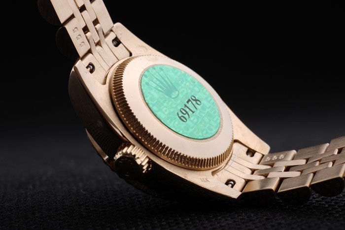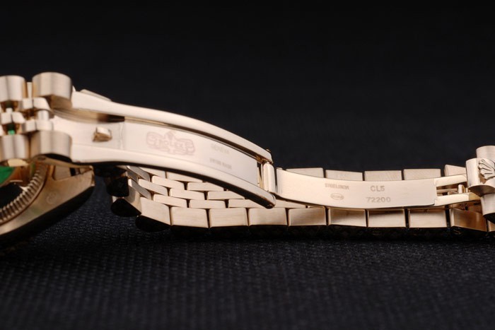 Retour: plaqué or jaune 18k inoxydable cas de poussée en arrière en acier avec le vert Rolex logo stamp