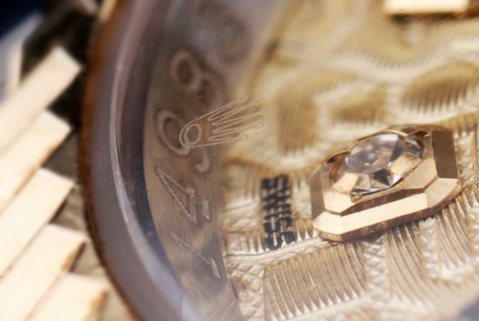 Crown: plaqué or jaune 18k couronne cutwork en acier avec Rolex logo