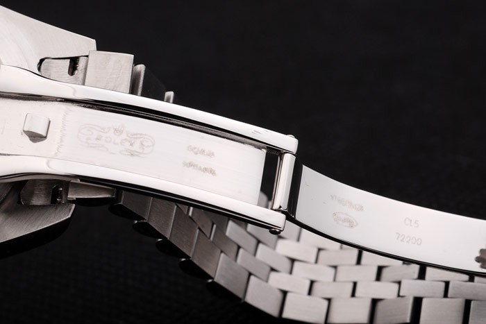Bracelet: brossé et poli inoxydable cha ne à maillons en acier Boucle déployante et Rolex couronne engraving