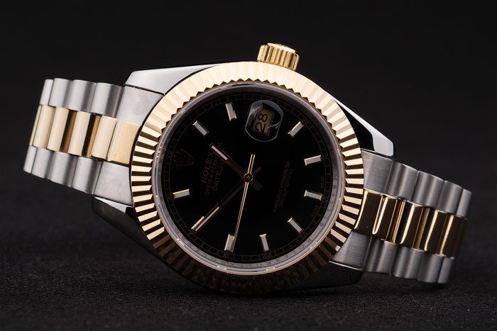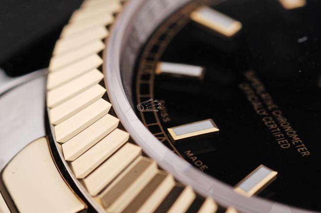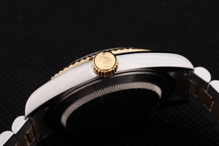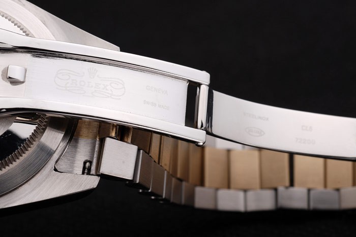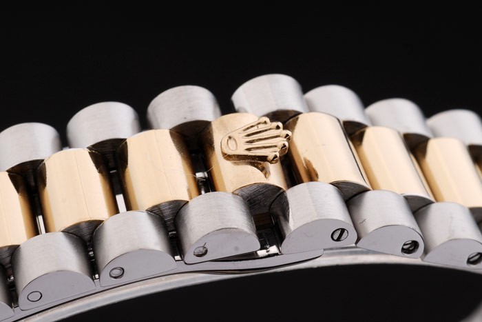 Color japonais: acier inoxydable brossé et jaune cha ne à maillons or avec Boucle déployante et Rolex couronne engraving