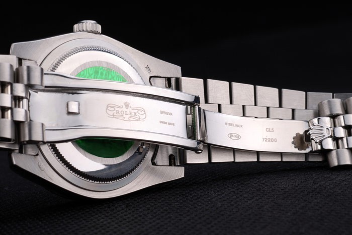Retour: Acier inoxydable de cas de poussée en arrière avec le vert Rolex logo stamp