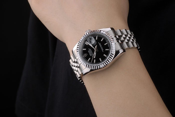 Bracelet en acier inoxydable: brossé et bracelet en acier inoxydable poli avec gravure Rolex fermoir caché affichant la longueur Rolex logo