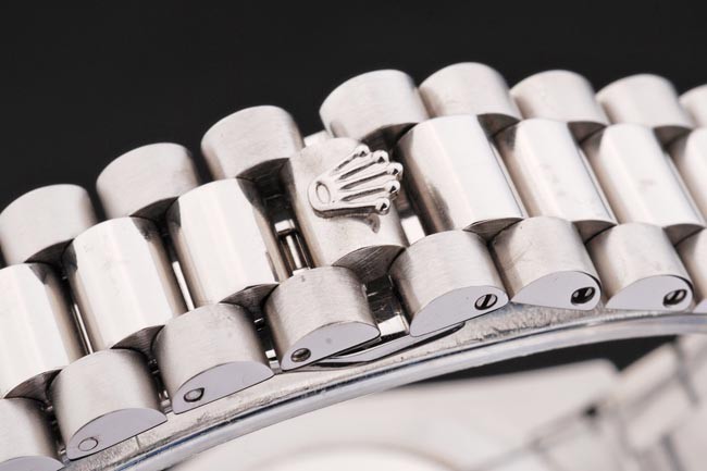 Bracelet: brossé et poli inoxydable cha ne à maillons en acier Boucle déployante et Rolex couronne engraving