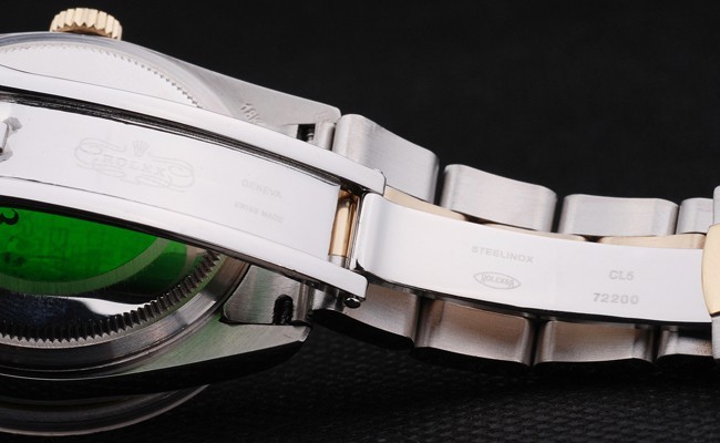 Retour: Acier inoxydable push-en affaire avec le vert Rolex logo stamp
