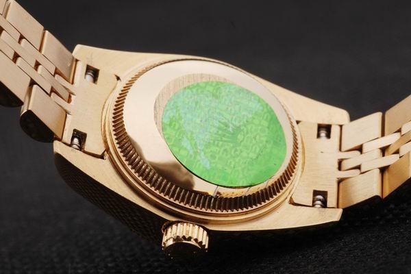 1Back: Repoussez en or jaune 18 carats avec l’autocollant vert et Rolex markings