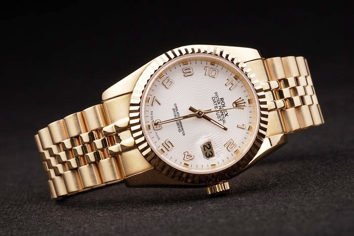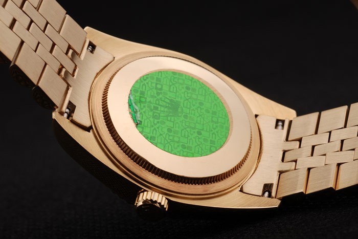 Back: Repoussez en or jaune 18 carats avec l’autocollant vert et Rolex markings