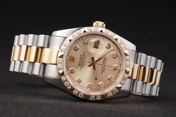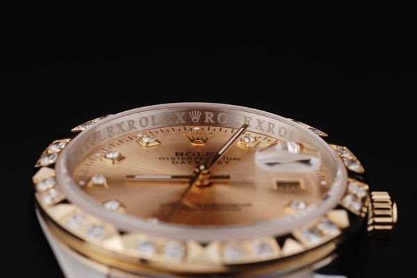 Bezel: Diamond clouté 18k jaune lunette en or avec marquant les heures