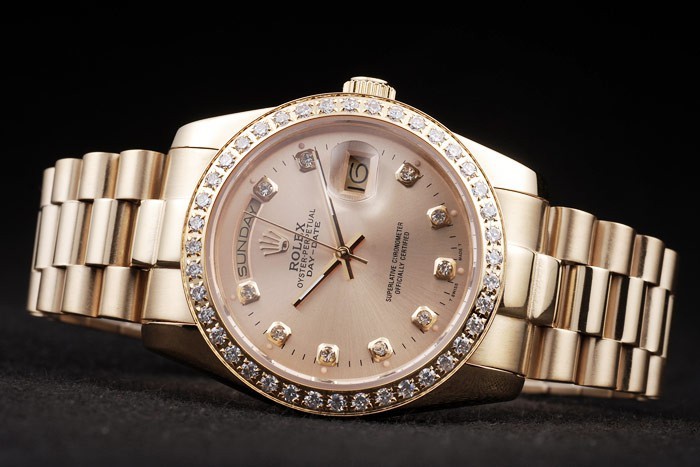 Crown: plaqué or jaune 18k couronne cutwork en acier avec Rolex logo