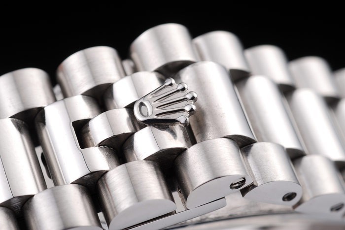 Bracelet en acier inoxydable: brossé lien bracelet en acier inoxydable avec Rolex gravé fermoir caché affichant la longueur Rolex logo