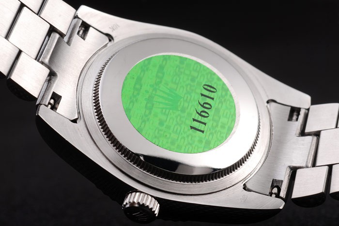 Retour: Acier inoxydable de cas de poussée en arrière avec vert Rolex logo stamp