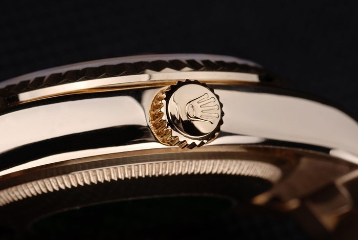 Retour: plaqué or jaune 18k inoxydable cas de poussée en arrière en acier avec le vert Rolex logo stamp
