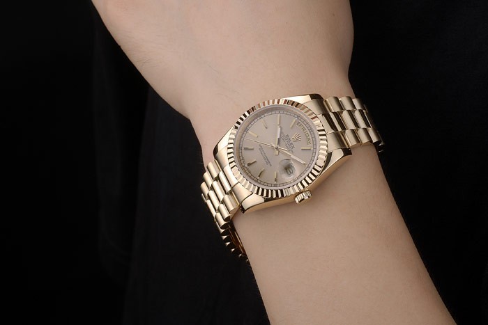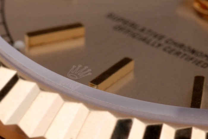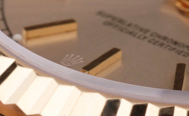 Watch fermoir: couronne plaqué or jaune 18k cutwork en acier avec Rolex logo