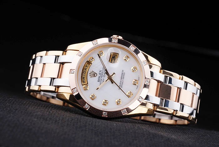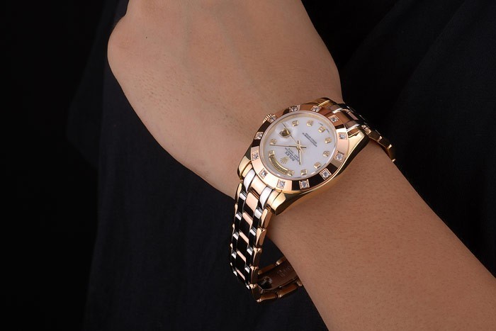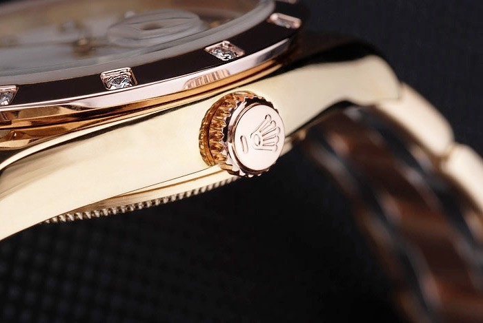 Crown: plaqué or rose 18-or couronne cutwork en acier avec Rolex logo