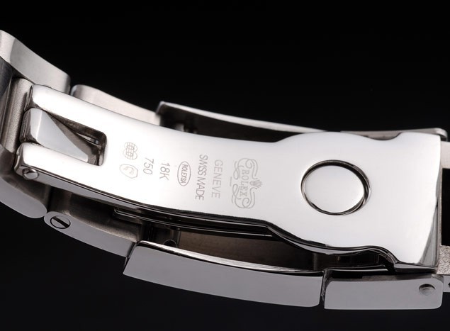 Bracelet en acier inoxydable: brossé et poli bracelet à maillons en acier inoxydable avec Rolex gravé boucle déployante affichant la longueur Rolex logo