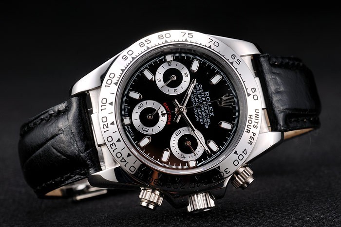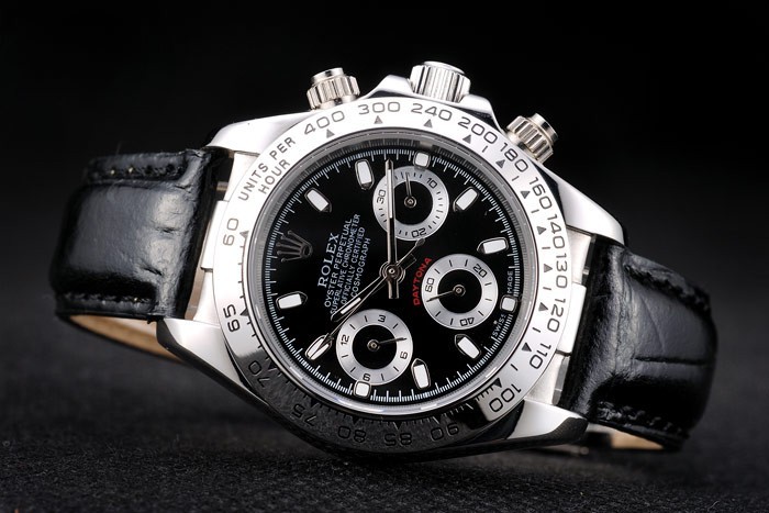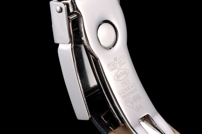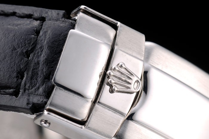 Bracelet en acier inoxydable brossé: Rolex en relief crocodile noir bracelet en cuir de chaleur avec gravé en acier inoxydable boucle déployante avec logo Rolex sur top