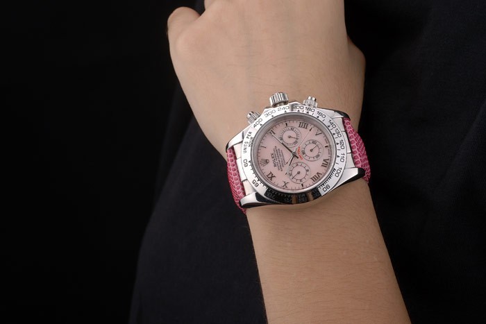 Bracelet en acier inoxydable: Rose bracelet en cuir de serpent avec Rolex et le logo Gravure et acier inoxydable boucle déployante en acier affichage Rolex logo
