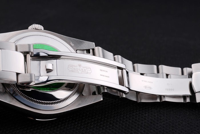 Retour: Acier inoxydable push-en affaire avec le vert Rolex Gravure stamp