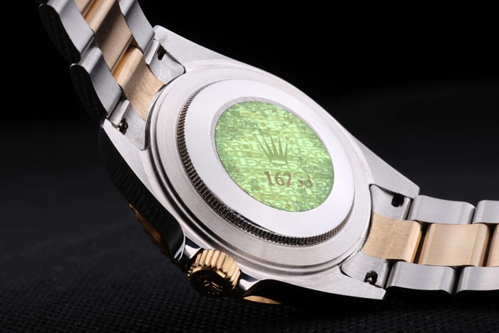 Retour: Acier inoxydable push-en affaire avec le vert Rolex Gravure stamp