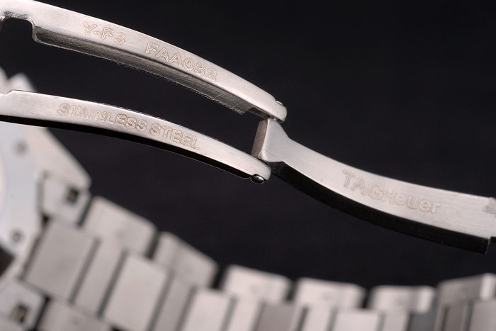 Bracelet: brossé lien bracelet en acier inoxydable avec pli Tag Heuer logo gravé de libération de poussée dans clasp