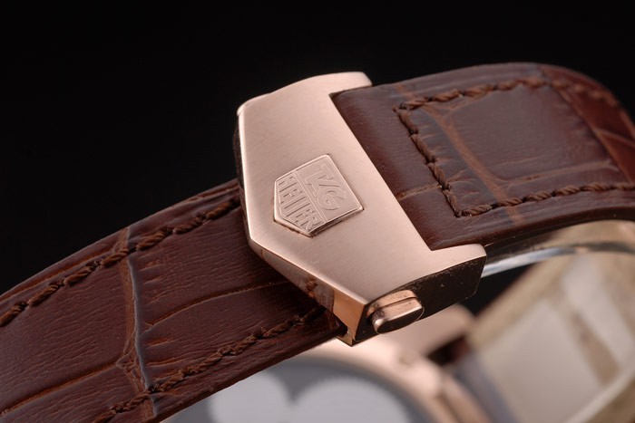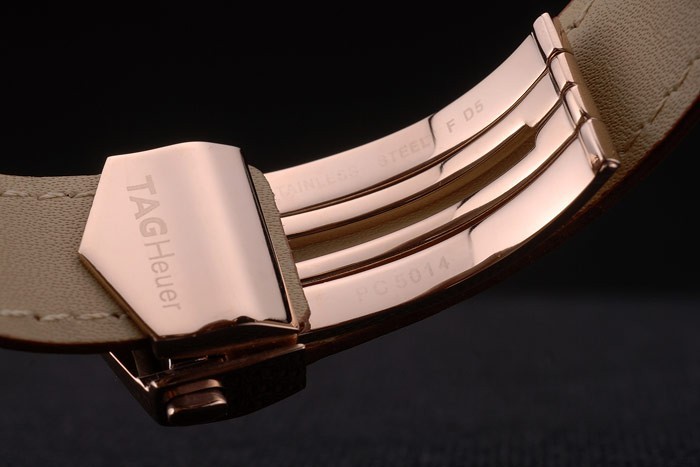 Crown: 18k rose-plaqué or couronne cutwork avec Tag Heuer logo et deux poli inoxydable couronnes de boutons-poussoirs de chaque c té de it