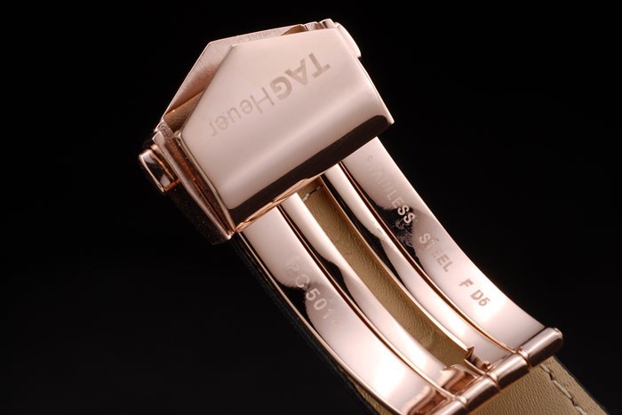 Crown: plaqué Rose-or couronne cutwork avec Tag Heuer logo l’assiette et la bande rouge et deux couronnes de CutWork plus petites de chaque c té de celui-ci