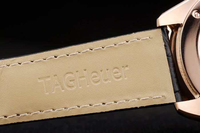 Bracelet: Heat gaufré Tag Heuer noir crocodile bracelet en cuir avec or rose push-presse boucle déployante avec Tag Heuer logo sur top