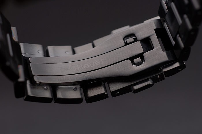 Bracelet: Heat gaufré Tag Heuer bracelet en cuir brun crocodile avec 18k or rose plaqué dépliante en boucle avec poussoir feature