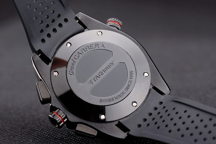 Retour: Acier inoxydable poli enfichable à l’arrière avec la mécanique révélant centre transparent et Tag Heuer Carrera engravings