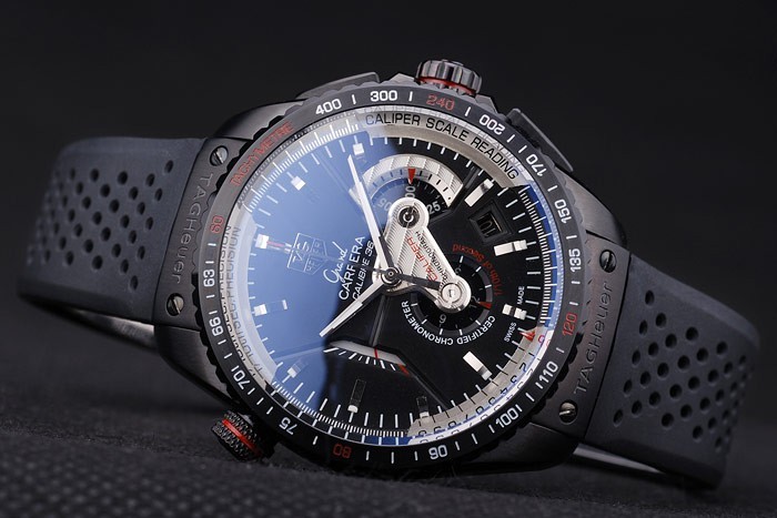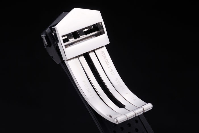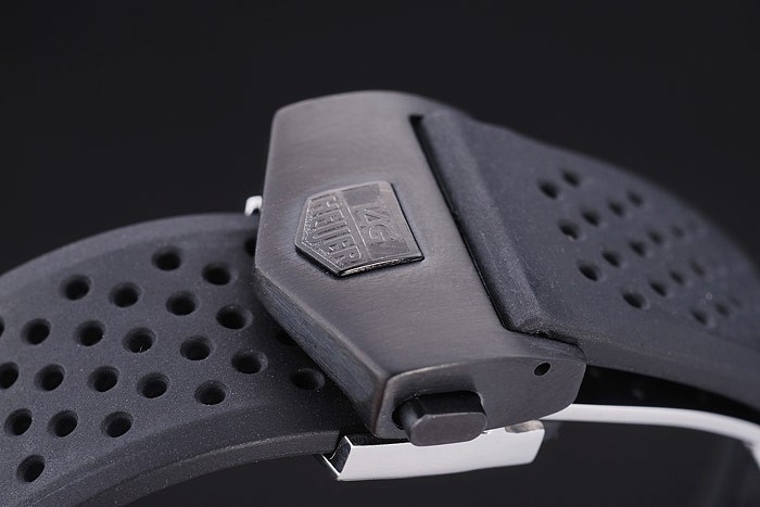 Bracelet en acier inoxydable: perforé bracelet en caoutchouc noir avec Tag Heuer gravé ion- bouton plaqué poussoir caché clasp