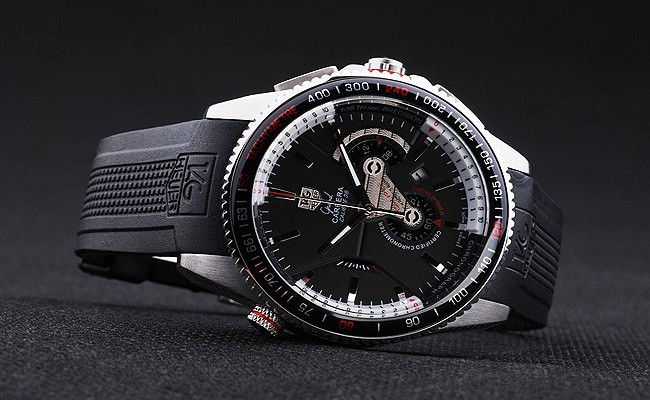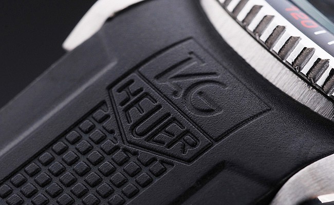Bracelet: texturé bracelet en caoutchouc noir avec la chaleur en relief timbre Tag Heuer et gravé crochet boucle clasp