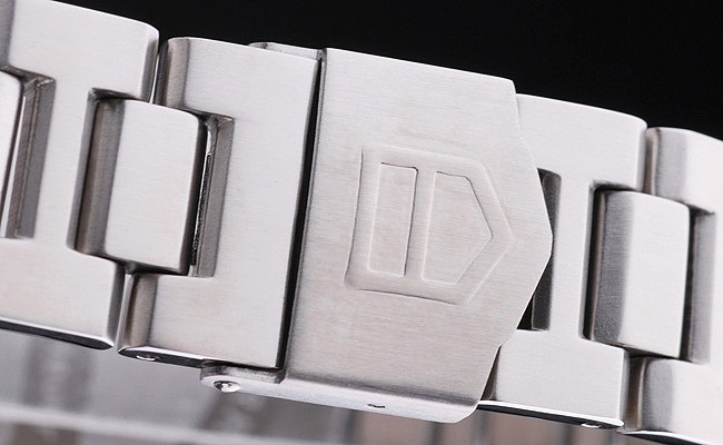 Crown: couronne cutwork en acier inoxydable poli avec Tag Heuer logo ainsi que deux couronnes supplémentaires de chaque c té et une sur la face supérieure corner