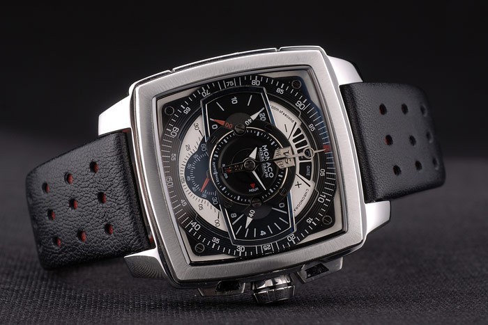Bracelet en acier inoxydable: Heat gaufré Tag Heuer perforé noir bracelet en cuir avec surpiq res rouges à l’intérieur et l’acier inoxydable pli en boucle avec poussoir feature