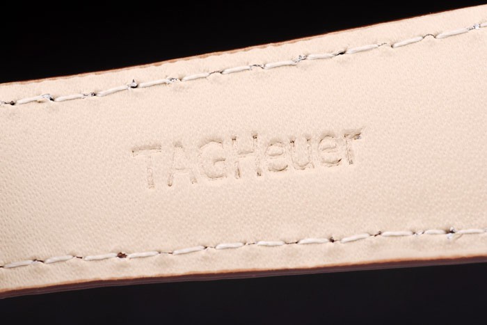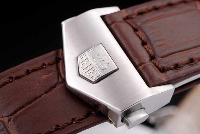 Bracelet en acier inoxydable: Brown bracelet en cuir de crocodile avec la chaleur en relief Tag Heuer timbre et acier inoxydable brossé push-presse pli fermoir -in avec Tag Heuer logo sur top