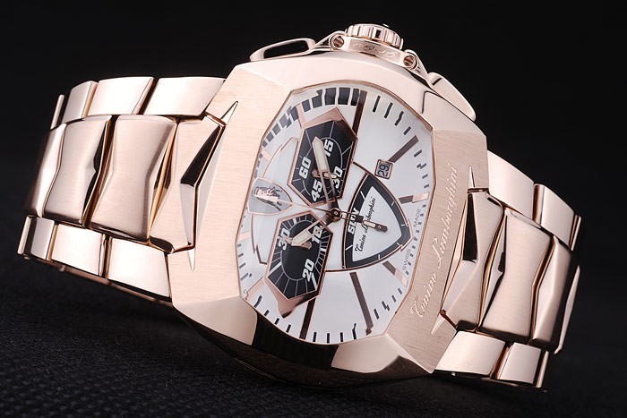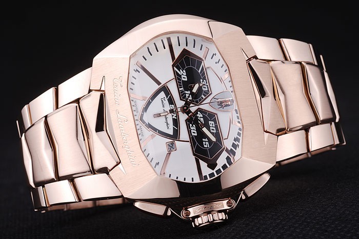 Crown: 18k or rose plaqué couronne cutwork avec Tonino Lamborghini logo et deux émail rouge surmonté oblongs couronnes à bouton-poussoir de chaque c té de it