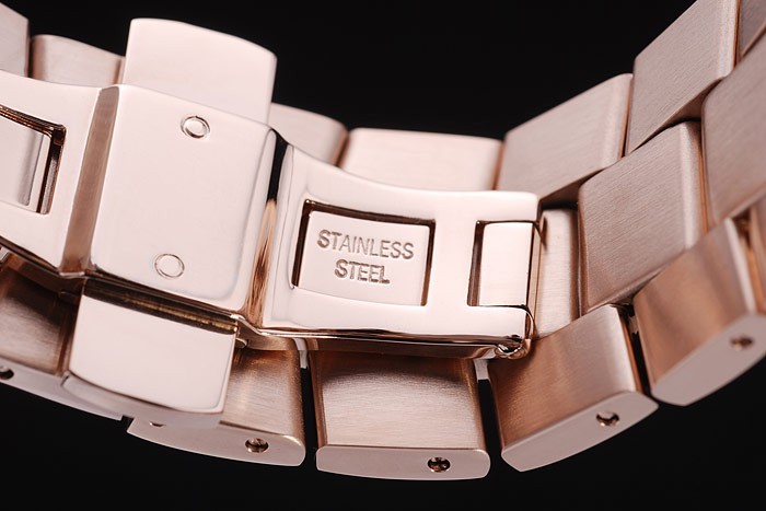 Bracelet en acier inoxydable: 18k plaqué or rose inoxydable bracelet à maillons en acier avec bouton-poussoir caché clasp