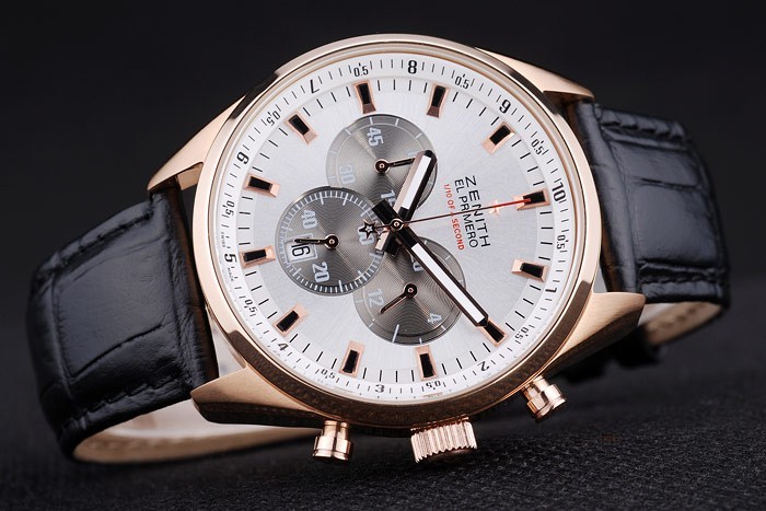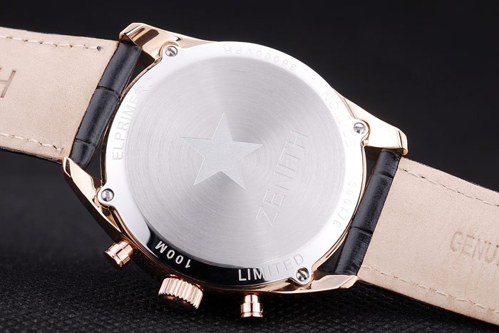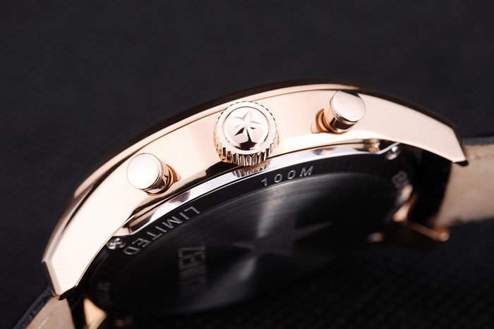 Crown: plaqué Rose-or couronne cutwork avec Zenith gravure logo étoile et deux petits ronds à bouton-poussoir couronnes de chaque c té de it